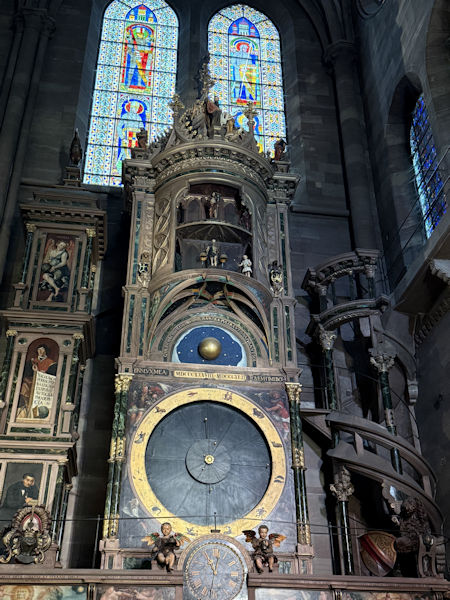 astronomical clock is an engineering marvel, originally contructed in the 14th century, displays complex data including planetary positions, moon phases and eclipses along with a daily procession of automata figures of Christ and the Apostles The current clock dates from 1681-1870 |