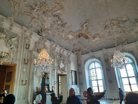 crystal chandeliers and light from the windows created a unique atmosphere in this room |