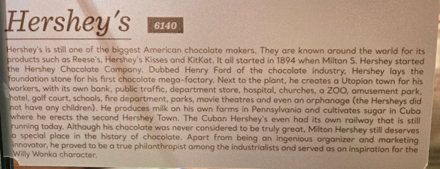 tickets included chocolate samples of the varieties described throughout the museum |