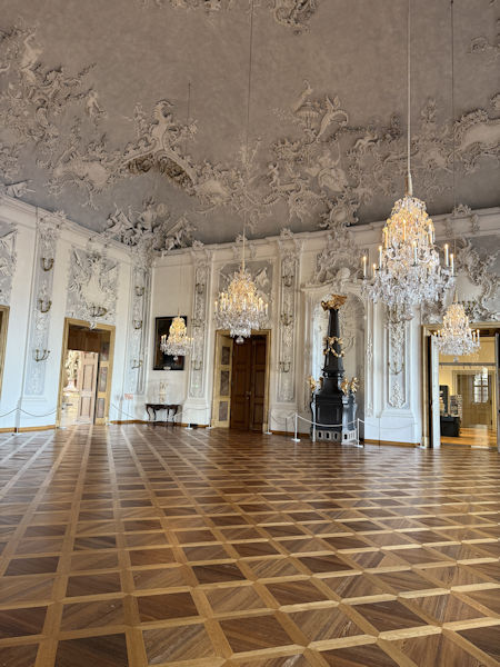 crystal chandeliers and light from the windows created a unique atmosphere in this room |