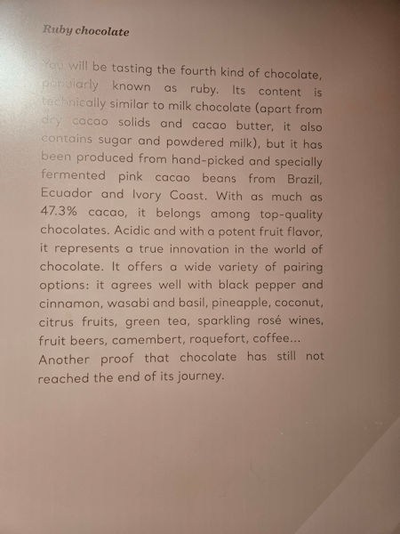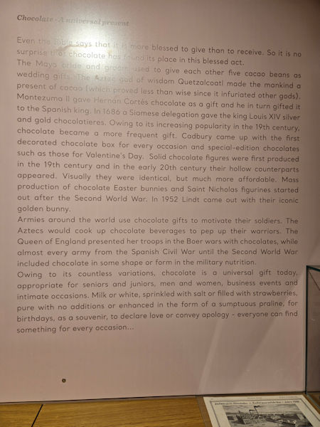 tickets included chocolate samples of the varieties described throughout the museum |